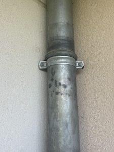 L’objet sur cette image est un tuyau métallique, probablement une descente de gouttière ou un conduit d’évacuation des eaux pluviales. Le système de fixation visible à la jointure est appelé un collier de serrage ou une bride de fixation, utilisé pour maintenir le tuyau en place contre le mur.